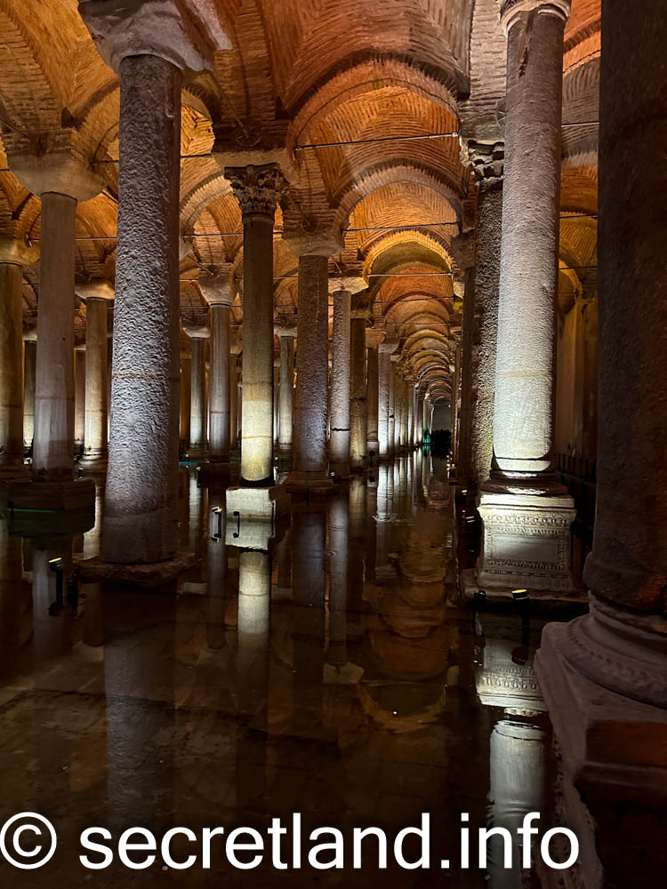 Цистерна Базиліка в Стамбулі – це величезне давньоримське водосховище, стелю якого утримують 336 мармурових колон. Площа Цистерни Базиліки 9800 метрів квадратних.